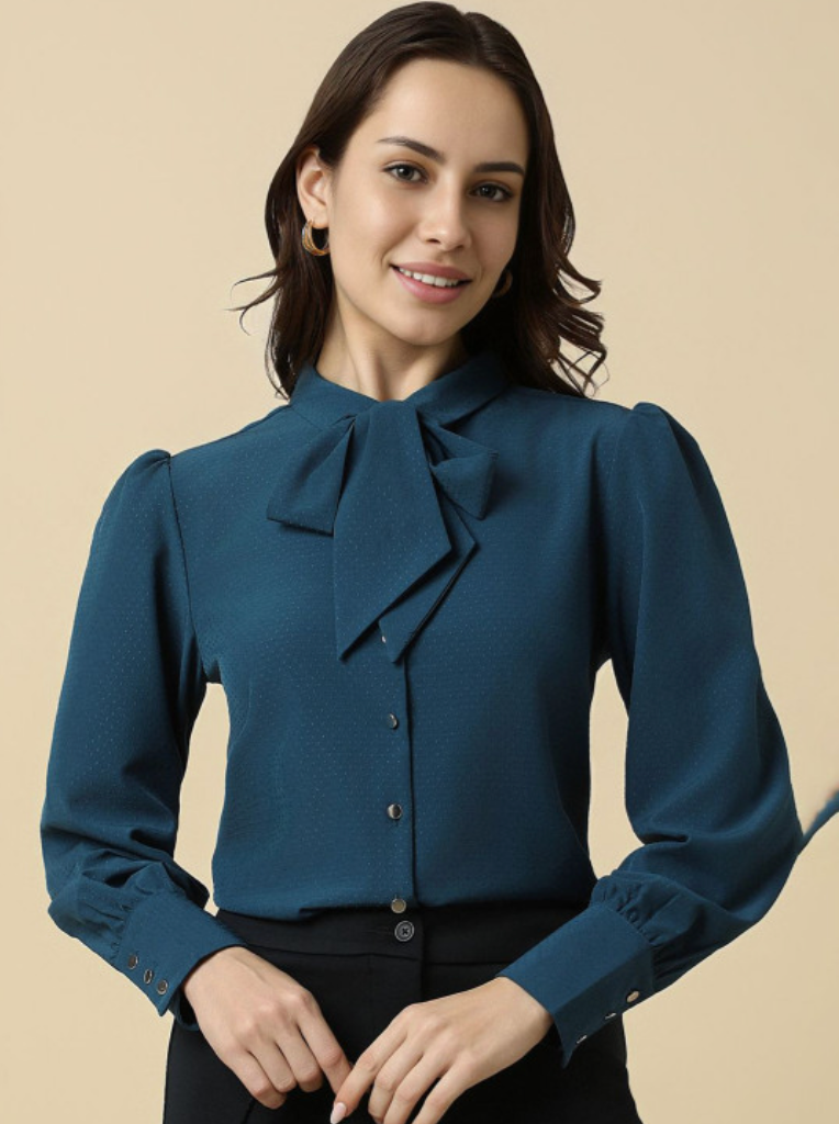 Navy blue solid self design opaque Formal shirt ,has a club collar, button placket, na pocket, long regular sleeves, curved hem
